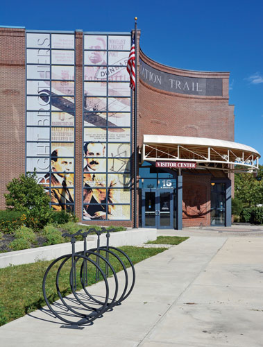 Today those renovated buildings house the Wright-Dunbar Interpretive Center and Aviation Trail Visitor Center, the Aviation Trail Parachute Museum and The Wright Cycle Co. Those buildings are a great place to start a visit to the National Aviation Heritage Area because they’re located within steps of each other and all are free.